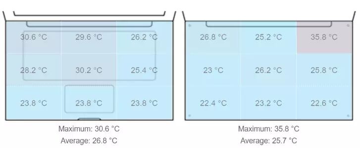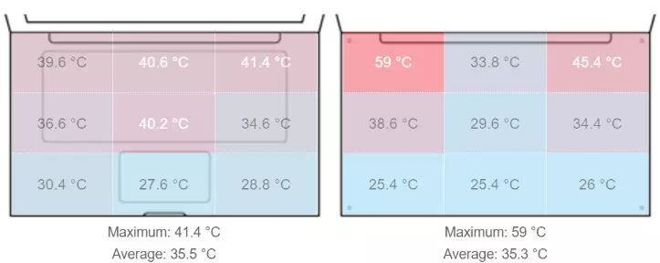(闲置时发热情况,左为机身正面,右为机身背面)