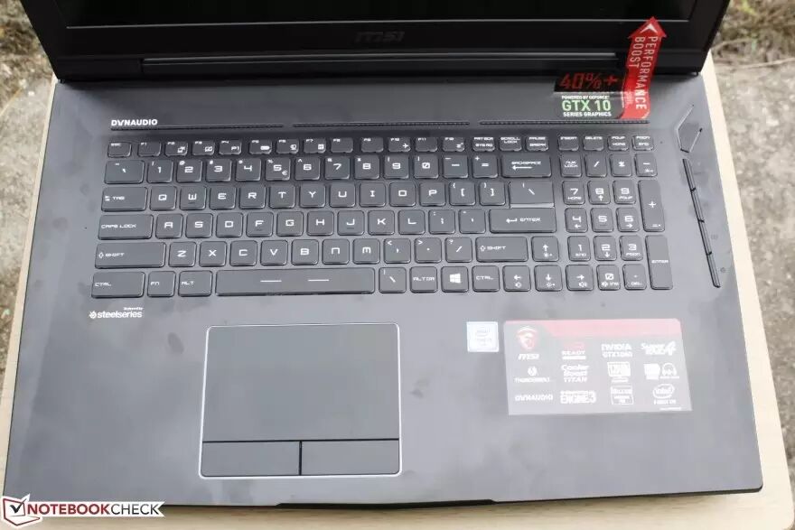 鉴于较厚的外壳以及巨大的散热装置,微星的游戏笔电系列,机身的表面上通常不会很热,即使在满负荷运转情况下,GT73VR的键盘和手腕承托区也不会发生过热的现象。发热主要集中在键盘最上方的位置,手指一般很少会碰到那个区域。