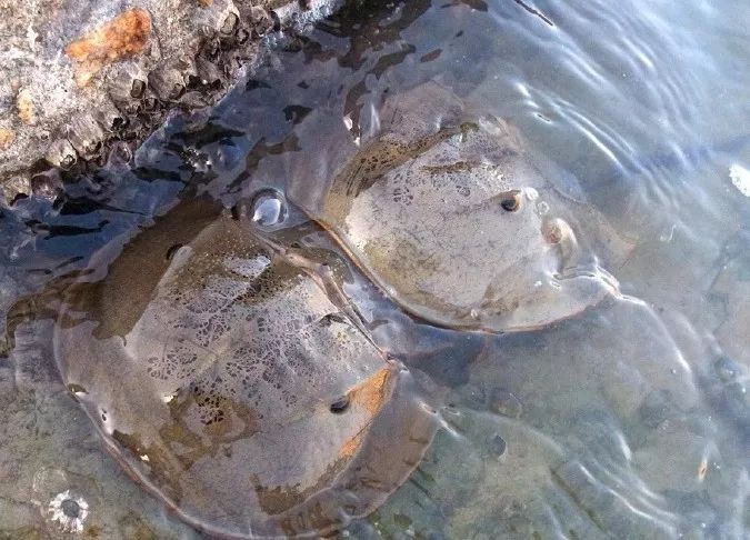 前天下午5时许,市民杨先生在筼筜湖靠近邮电大厦岸边散步,看见两只中华鲎趴在浅水区。