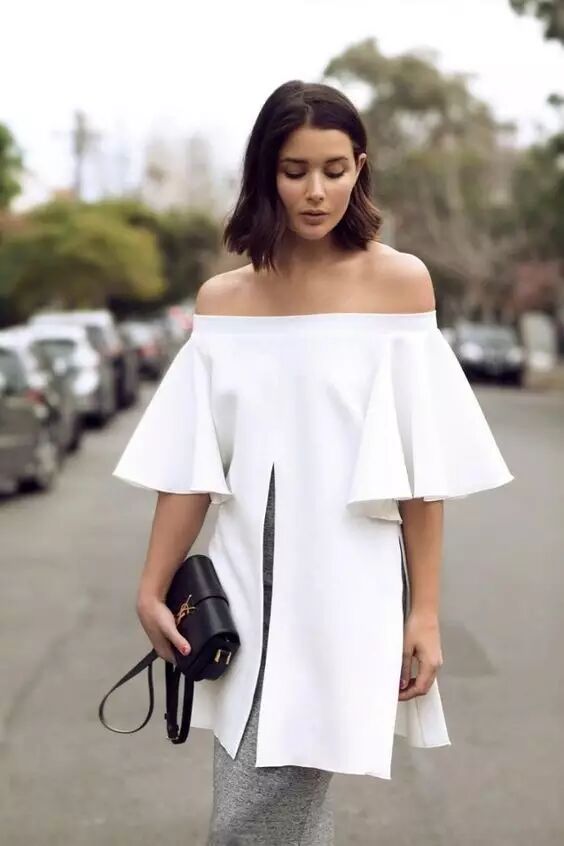如果你觉得去上班穿露肩装有些暴露,那敞肩的款式也是不错的选择,不失造型感同样也是遮肉利器。而且,穿一字领衣服无疑地可以露出锁骨,有显瘦效果,但绝对不适合肩膀偏宽的人;反而「敞肩装」就可以修饰较宽的肩膊。
