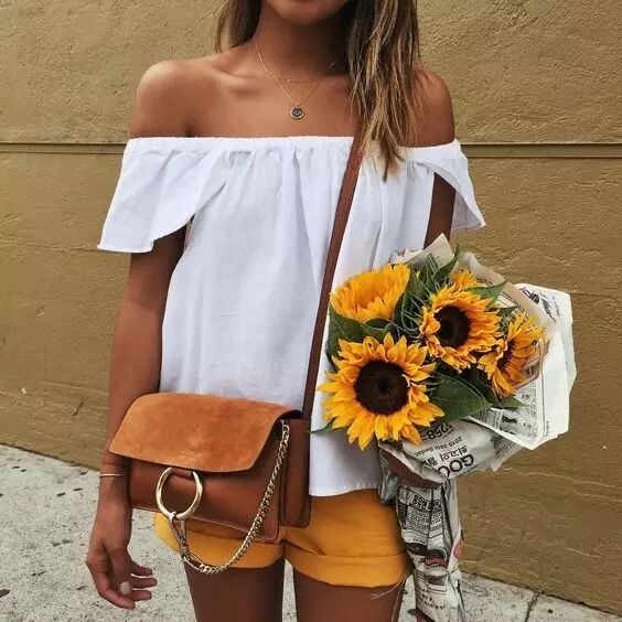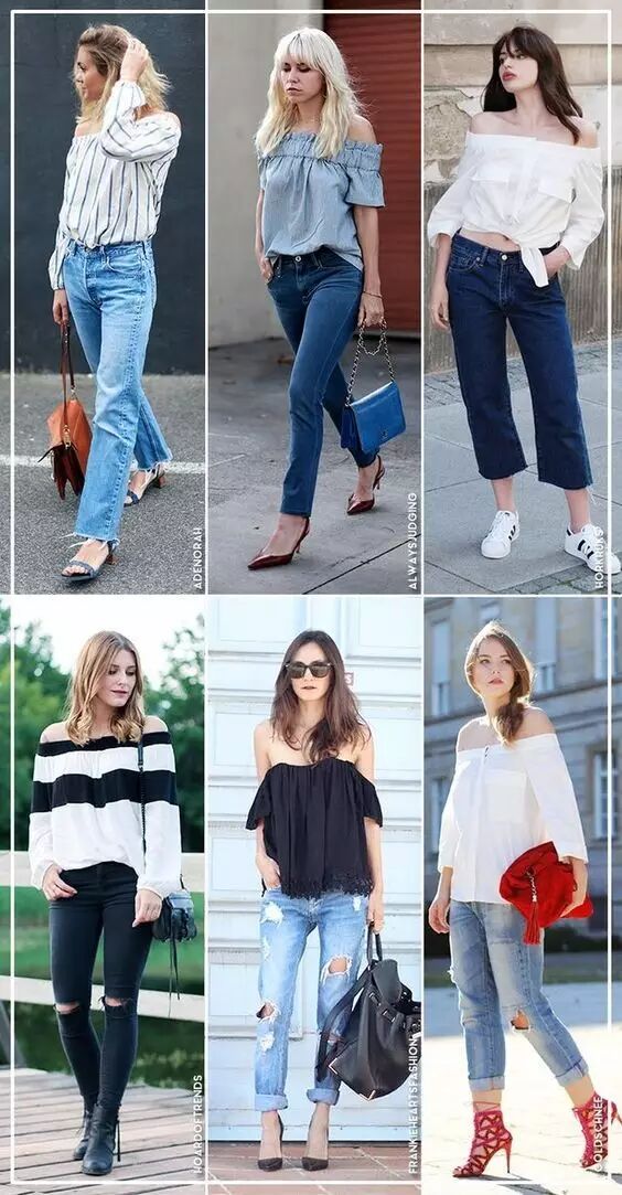 一字肩上衣配短裤、短裙看起来青春洋溢,而且穿搭起来几乎不会出错。首先,搭配牛仔裤、牛仔裙是100% 安全之选,基本上怎样都可以搭。再大胆一点的,可选配浅色系的裤款、网球裙、A字裙都可以来!