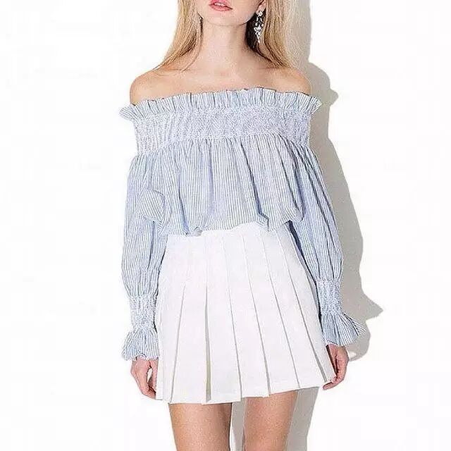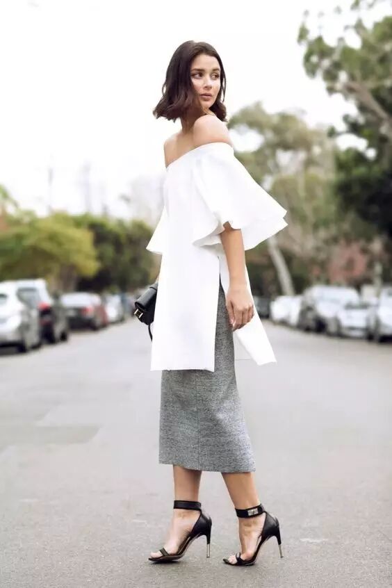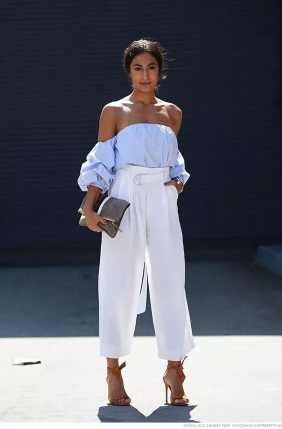 Tip 3:大部份的露肩上衣都有「泡泡袖」的感觉(比较宽松),所以建议你下半身最好配搭较贴身的裤/裙,像阔腿一类的比较不建议。假若上、下身都是宽松的,看起来就像个麻袋一样。