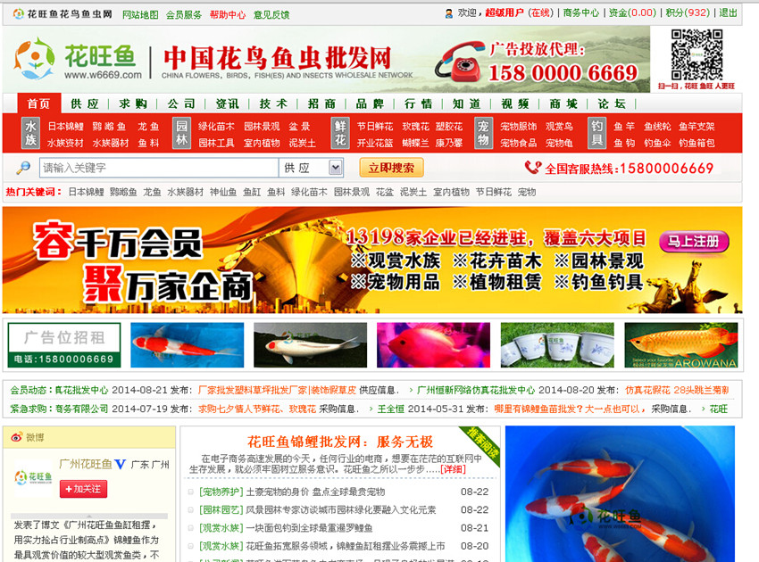 花旺鱼—中国花鸟鱼虫批发网:www.w6669.com。提供花鸟鱼虫批发零售、锦鲤批发、锦鲤鱼缸租摆,鱼缸清洗护理,锦鲤鱼池护理,水族用品、渔具钓具、花卉园艺、商家和产品展示、品牌推广、广告招商代理等服务。