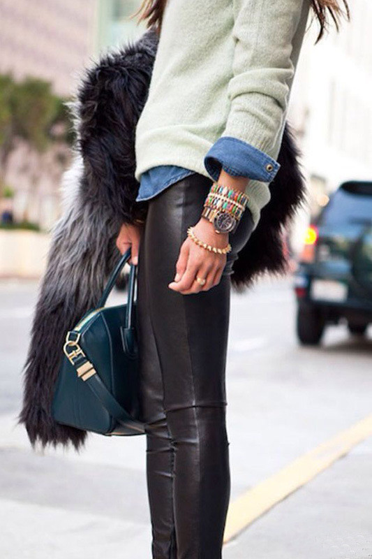 似乎只要是金属饰物的叠搭,就会给造型增加帅气感,即使搭配“毛茸茸”和“马卡龙”也不例外。