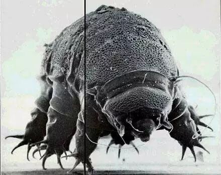 水熊、水熊虫,是对缓步动物门生物的俗称。 缓步动物门是动物界的一个门,是俗称水熊虫的一类小型动物,主要生活在淡水的沉渣、潮湿土壤以及苔藓植物的水膜中,少数种类生活在海水的潮间带。有记录的 大约有900余种,其中许多种是世界性分布的。在喜马拉雅山脉(6000m 以上)或深海(4000m 以下)都可以找到它们的踪影。此外人类还发现水熊可在真空中生存。