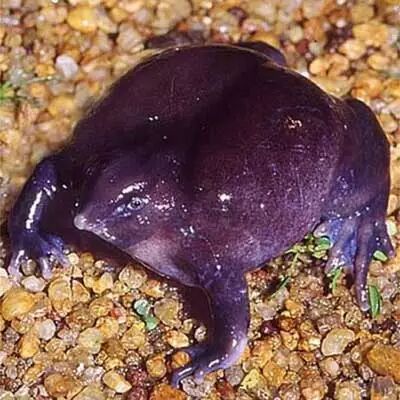 紫蛙呈亮紫色,嘴与猪十分相似,看起来像一个饱满的李子。根据科学家分析,这只蛙属于生活在远古恐龙时期的一种特殊蛙类的分支种类。紫蛙之所以2005年才被人发现,是因为它们生活于地下,只会在雨季的时候现身两周,其它时间一直过着隐身的生活。