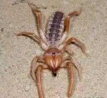 避日蛛,又称日蛛,日蝎、风蝎、骆驼蜘蛛。节肢动物门蛛形纲避日目,有1100个不同的种类。生活在干热地区,多数种类金黄色。因行动敏捷而称风蝎或因头部隆起又称驼蛛。