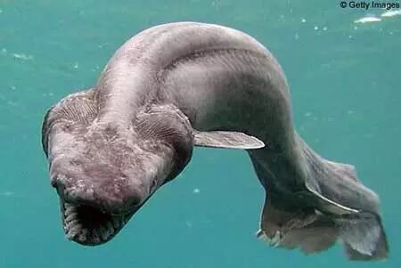 皱鳃鲨是鲨鱼中最原始的一种,有“活化石”之称。皱鳃鲨在2007年初成为人们关注的焦点,当时一名渔夫在日本栗岛海洋公园附近海域发现了一条皱鳃鲨 ,长有 1.6米 。它和普通的鲨鱼不一样,口近端口,侧面的线纹呈沟状,鳃孔有6对,牙齿呈“山”字形,通常生活在深海。据悉,皱鳃鲨平时生活在海水中,数十亿年来几乎没 有发生大的物种变异,素有“海洋活化石”之称的皱鳃鲨体型与鳗鱼类似,吻部极短,眼睛没有瞬膜。在这种鲨鱼的身体两侧有六条鳃裂,鳃间隔延长而褶皱,且相 互覆盖,所以命名为皱鳃鲨。皱鳃鲨主要生活在挪威到南非的大西洋东部,日本到澳大利亚的西太平洋以及从美国加利福尼亚到智利南端的东太平洋地区。