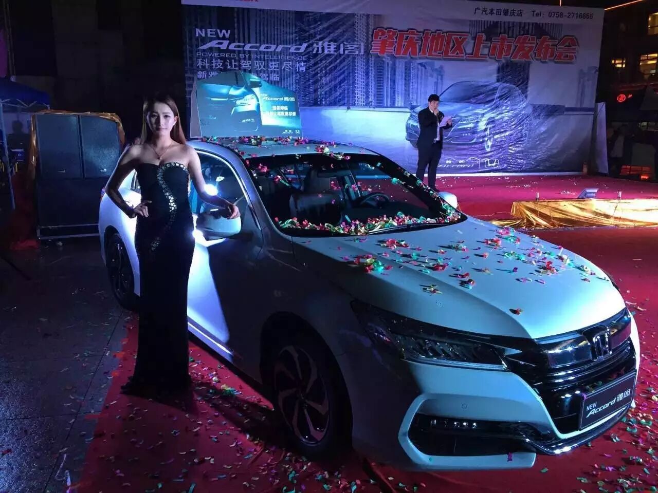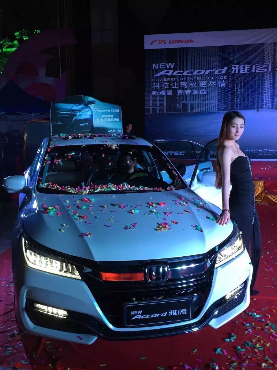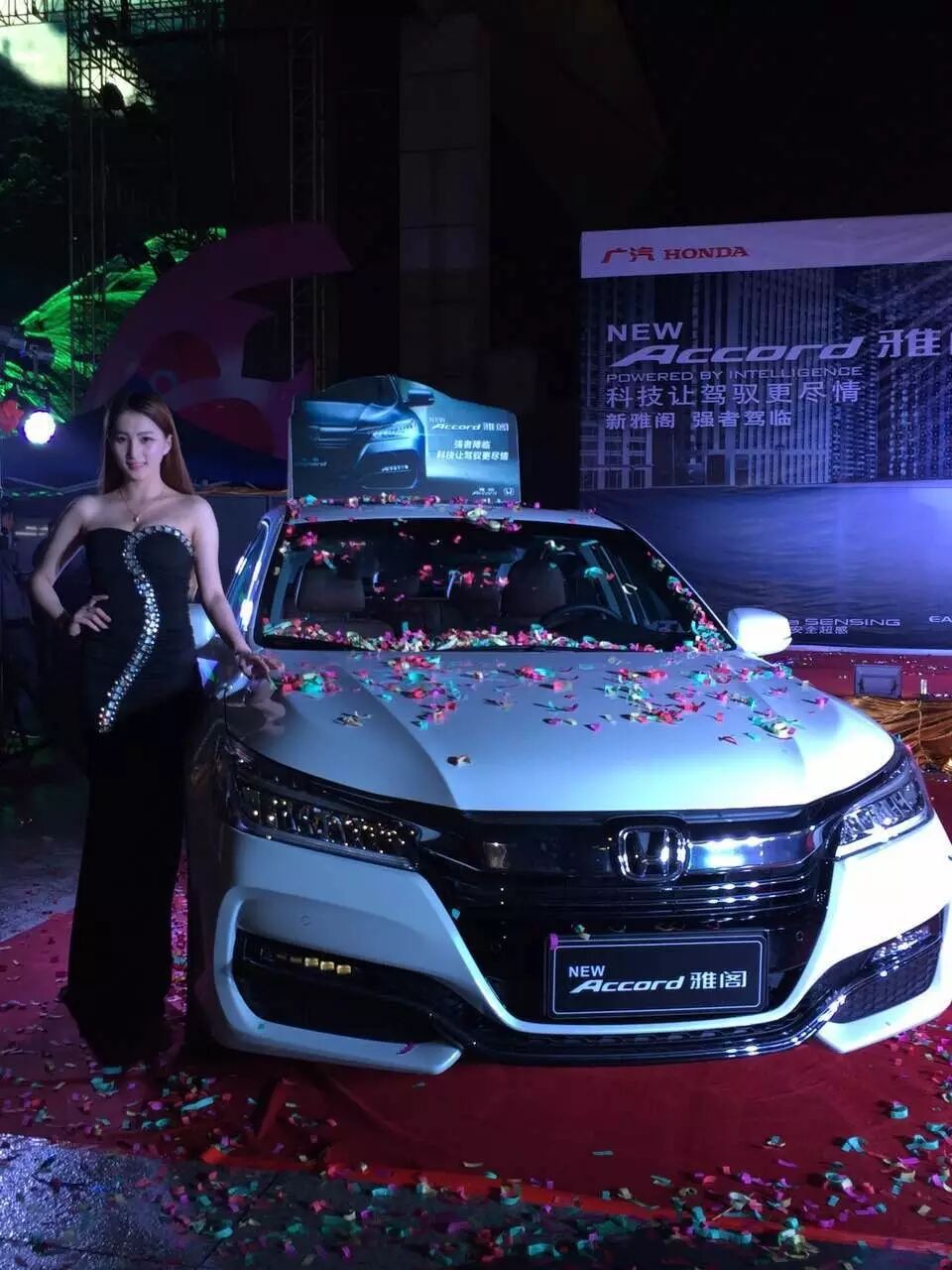 在激昂的音乐中,今夜的绝对主角,全色系新雅阁(Accord)登场,热烈的掌声顿时响彻现场。再加上车模的搭配,绝对是全场的聚焦点!