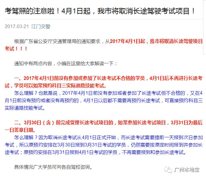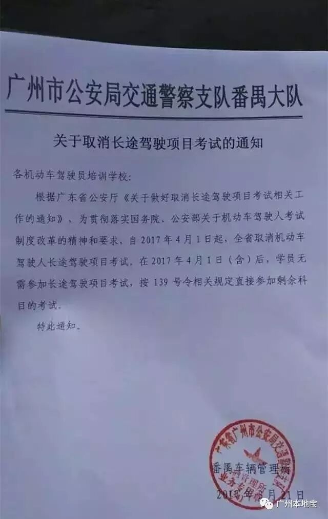 文件内容大意为“从4月1日起,全省取消机动车长途考试”!