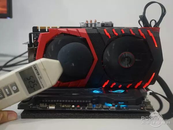 这里我们噪音仪测试显卡运行3DMark压力测试满载时的风扇噪音。