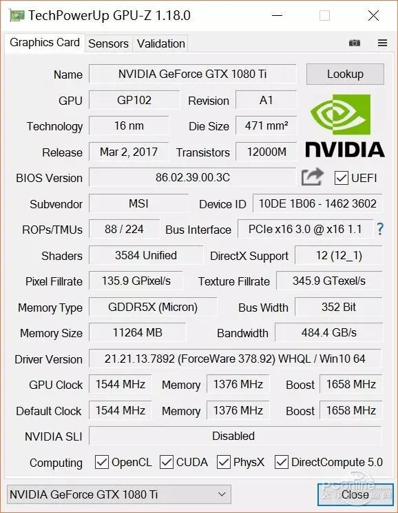 二、微星GTX1080Ti Gaming X 11G参数规格对比