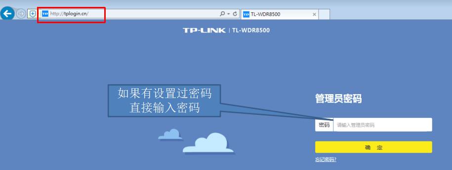 以TP-Link TL_WDR8500为例,登录设置网址:tplogin.cn ,没有注明密码,是因为第一次登录会直接提示用户设置密码。