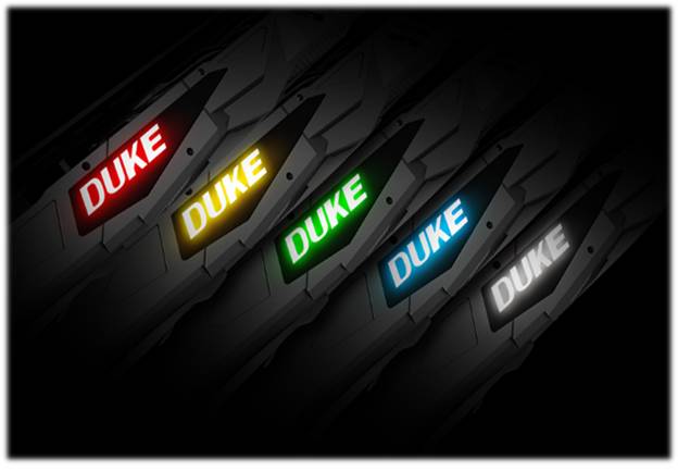 微星GeForce GTX 1080 8G DUKE暗黑龙爵外观十分霸气,独特的碳纤维纹理强化铝合金背板,时尚美观,颜值出众,更能提升显卡强度,防止弯曲变形,并能保护PCB背面元件。再加上可显示1680万种色彩的RGB LED灯,使用配套Mystic Light软件可以随心变换颜色,为你的游戏世界增添更多色彩,满足更多用户的独特个性化需求。