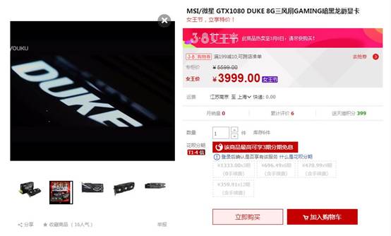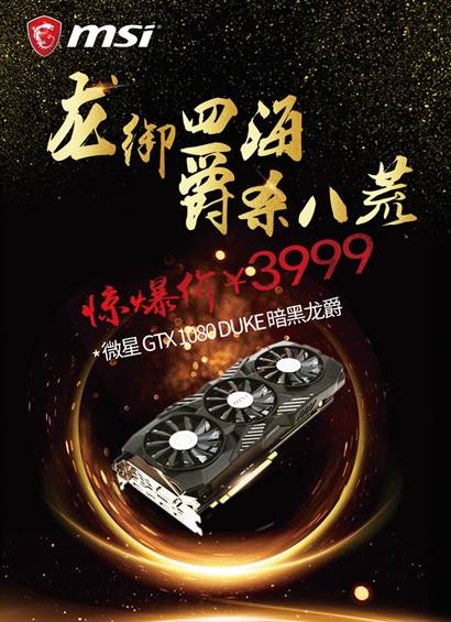 上周末微星GTX 1080 8G DUKE暗黑龙爵在京东商城的3999元优惠预售活动在玩家中激起了强烈的反响,为了满足更多玩家对这款游戏神器的需求,今天这款微星1080黑龙显卡的价格已经全线调整至3999元,从而让更多的玩家能够有机会享受到这款高端游戏显卡带来的畅爽游戏体验。