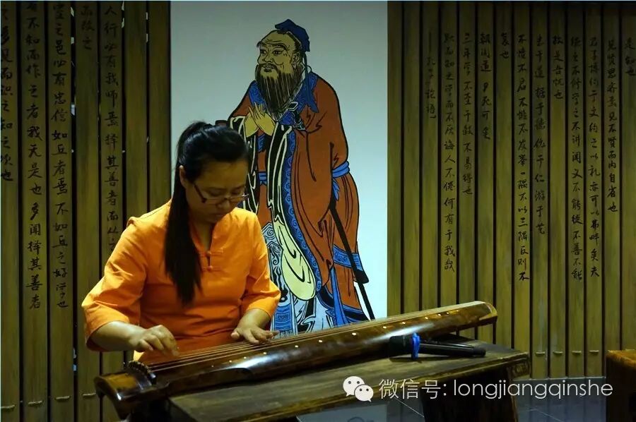 雅集中,来自省图书馆龙江书院古琴公益班的学员代表也上台演奏了一曲《笑傲江湖》,汇报了公益班的教学成果。古琴公益班上个月开课,距今虽不足一个月,但学员们学习热情很高,通过努力学习,目前已经逐渐掌握了古琴基本演奏技法,能够简单弹奏传统古琴开指小曲。随着学员们的学习进一步深入,所掌握的曲目将会更加的丰富。在龙江书院古琴公益班的推动下,将会有更多人了解古琴,并将这一非物质文化遗产传承下去。