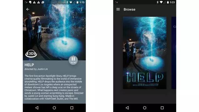 《救命!》(Help)是一段360度全景视频,可以通过谷歌先进技术和项目团队(ATAP)开发的应用Google Spotlight Stories观看。Spotlight Stories原本只适用于摩托罗拉Moto X手机,不过它最近也开始出现在其他智能手机上。它能在Nexus 5上运行,但在笔者的LG G4上还用不了。(这段视频大小将近1GB,所以做好心理准备吧,你可能得等上一阵。实际上刚发布的时候几乎根本没法下载。)