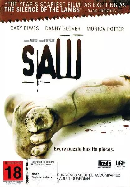 《电锯惊魂》,2004年出品的惊悚片,由华人导演詹姆斯·温(James Wan)执导。影片拍摄只用了18天,在2004年1月的圣丹斯电影节中首映。在同年10月29日在全球各地陆续上映,最后在北美地区带来了5518万美金的票房。由于第一辑的成功,后来出现了续集《电锯惊魂2》、《电锯惊魂3》、《电锯惊魂4》、《电锯惊魂5》、《电锯惊魂6》及《电锯惊魂7》。每一部都是叫好又叫座,影片拍摄时间之短、成本之低、票房之高创下了一个个记录,被奉为最经典的片。