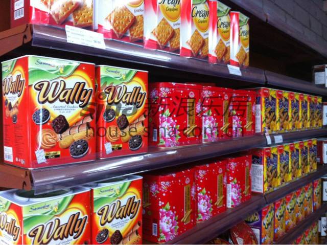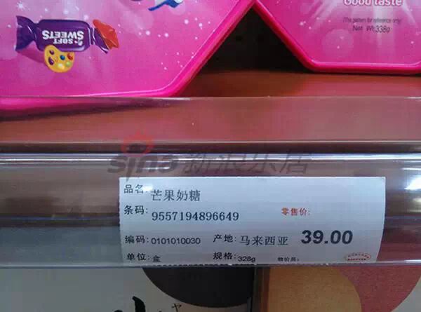 现场摆的都是食品类商品,例如糖果、饼干、水果、酒类。场内工作人员还在慢慢给商品上标签。水果的价格都比外面要便宜不少。