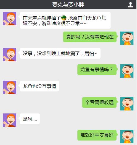 今天据四川鱼友说地震前夕她观察到龙鱼的不安和恐慌,和往日的游姿全然不同,但是也引起了鱼友的注意,当天晚上就地震了,这个没有传说中那样邪乎,但也是诡异!(间接在诉说着什么)
