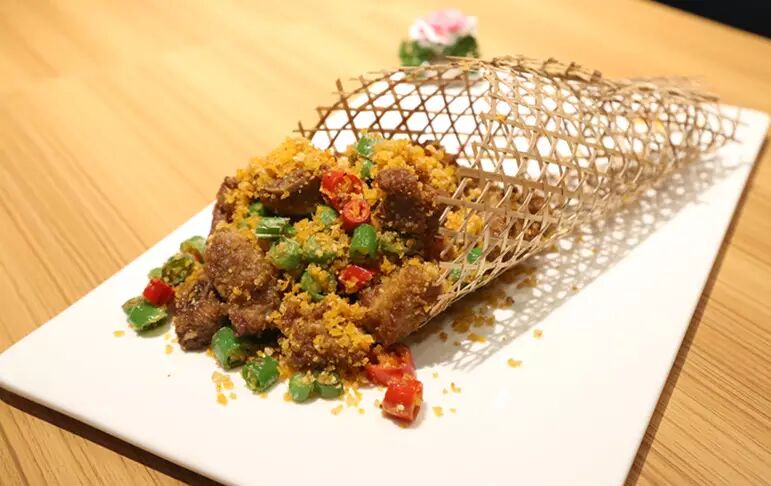 泰式桂鱼首先将鱼加调味腌制,拖上蛋黄糊,入热油锅炸成熟后,随即浇上盘泰式海鲜汁,一盘色味俱佳,外酥里嫩,酸甜可口的桂鱼跃上桌面,迅速打开了味蕾。