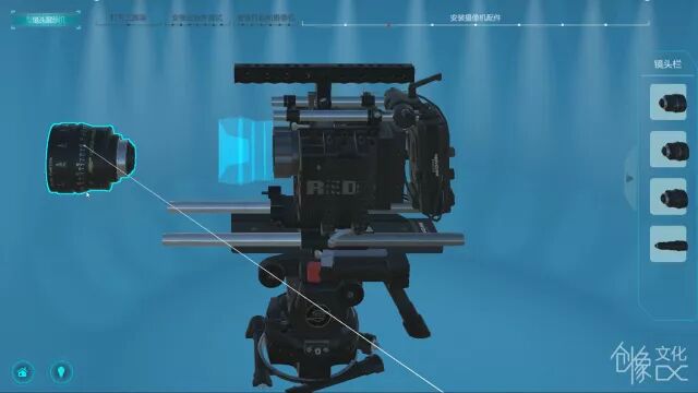 两个模块均包含交互及展示内容,详细的介绍了摄影机的主要零部件组成,以及如何拆卸、安装使用,为摄影专业的学生提供了细致的仿真展示。