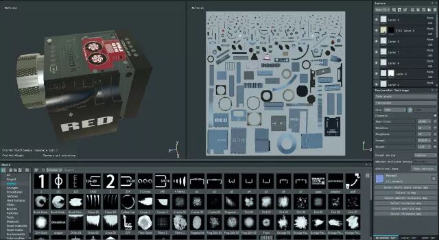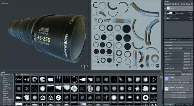 运用Substance Painter 制作模型纹理和材质。SP是一个全新的 3D 贴图绘制工具,当下次时代游戏贴图绘制常用工具,支持PBR基于物理渲染最新技术,无论是模拟模型上的水、火、灰尘等复杂效果,都能淋漓尽致地表现出来,为贴图加入精巧真实的细节。