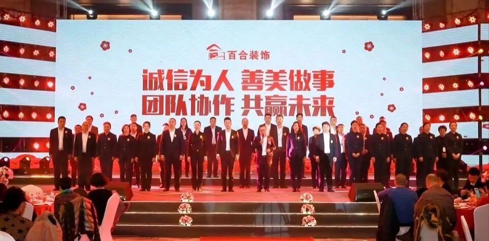 百合装饰管理团队上台致谢、感恩、宣誓。
