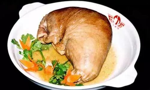 “麒麟”即乳狗,“胎”即猪肚。猪肚内包乳狗,吃的时候切开猪肚, “麒麟”就“脱胎”了。汉族客家名菜,为长汀清代官席中之上乘珍品。相传是早以前长汀司前街有个郑姓富户,其家妇女为求多子,常在猪肚内逐层填入小狗和乌鸡媛、白鸽、麻雀、野山参等清蒸服用。此后做为一种饮食疗法,一直在富户中流传。清朝末年汀郡总镇肖芝美兴办庆寿筵宴时,曾把“麒麟脱胎”列为首菜。