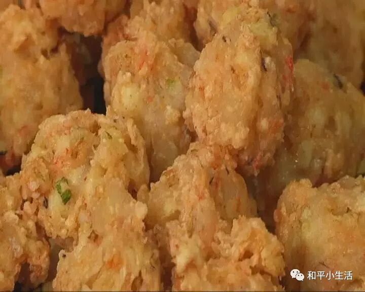 虾肉得有一定的黏度,但也得保留一定的颗粒感,吃起来才更加Q弹。接着加入马蹄粒和白肉丁,混合均匀之后就可以准备油炸了。当锅里的油温升到六成左右,就将虾肉泥握在左手,右手像挤肉丸一样挤出虾枣,放入油锅浸炸。等到虾枣颜色变得金黄诱人时,便可出锅。如果在酒楼,配上一碟橘油,那更是清甜爽口。不过在市场,趁热吃也很过瘾。