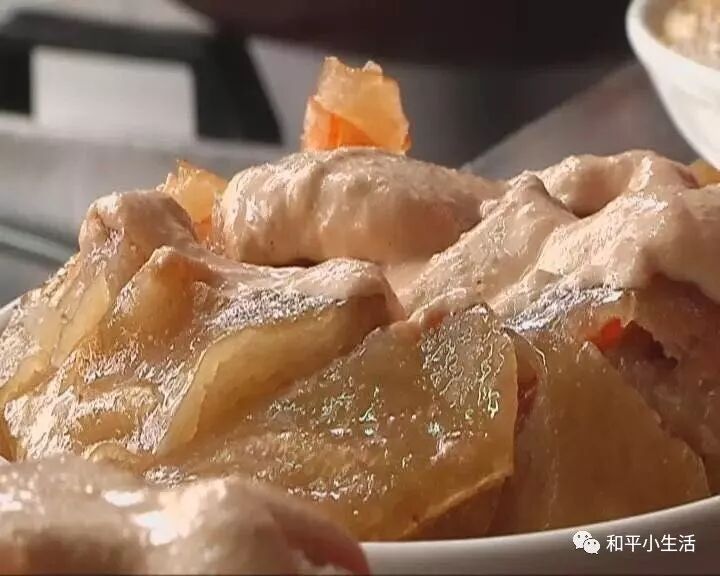 赵伯的鲎粿一开始也是这么做的,但他很快就发现了弊端,因为这样做出来的鲎粿吃下去之后很容易腹胀。所以赵伯就用马铃薯粉代替番薯粉,解决了鲎粿不易消化的问题,又用鲜虾、干贝制成的海鲜酱弥补了食客对鲎味的念想,这样的鲎粿无论外观还是味道都有很大的改进,吸引了许多食客来品尝。而这又启发了赵伯的第二次创新。