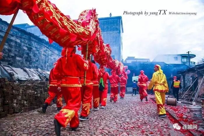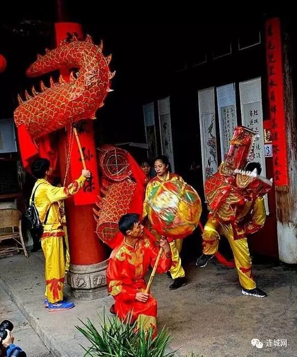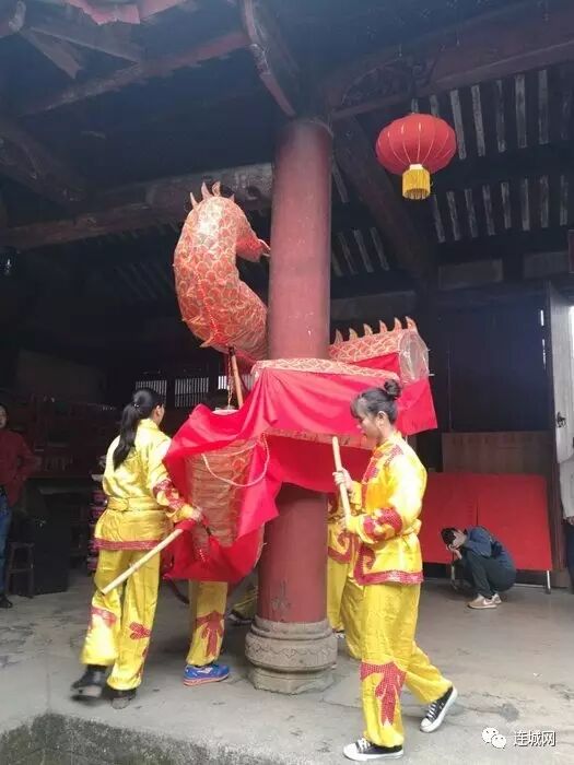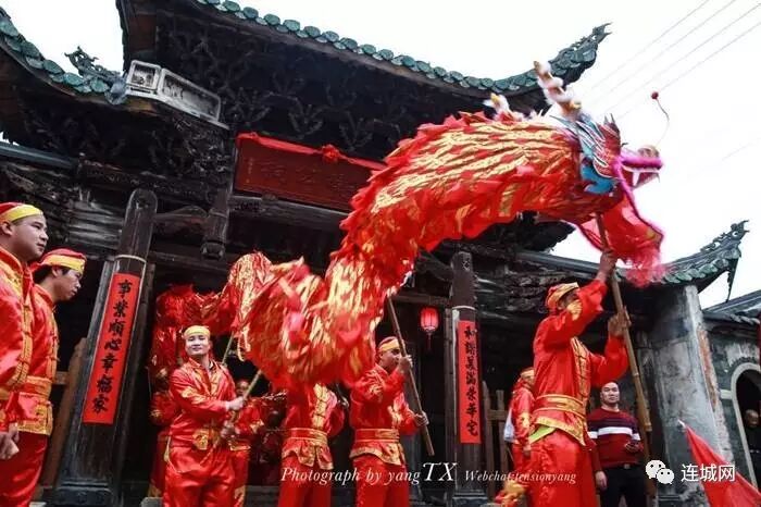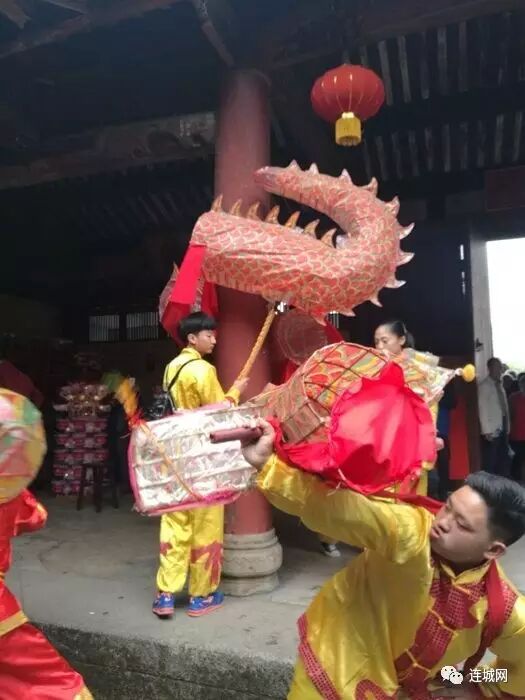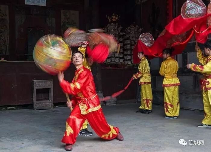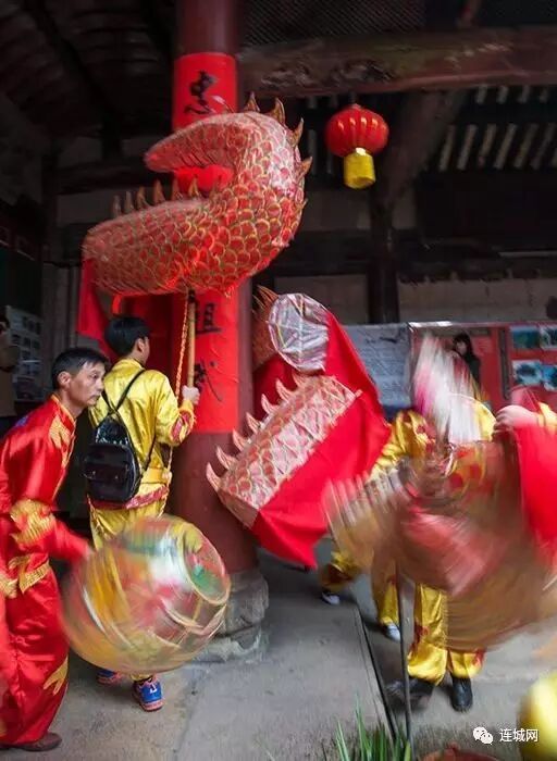 福建连城——庙前芷溪的舞龙源于一个民间故事。仙高岽的一个庙宇被江湖恶人冒充假和尚霸占。恶人常年会把前来求补问药的年轻姑娘都困于庙内,芷溪人为了营救众女子赶走强盗,派人到泉州南少林寺学武以解仙高岽之困。