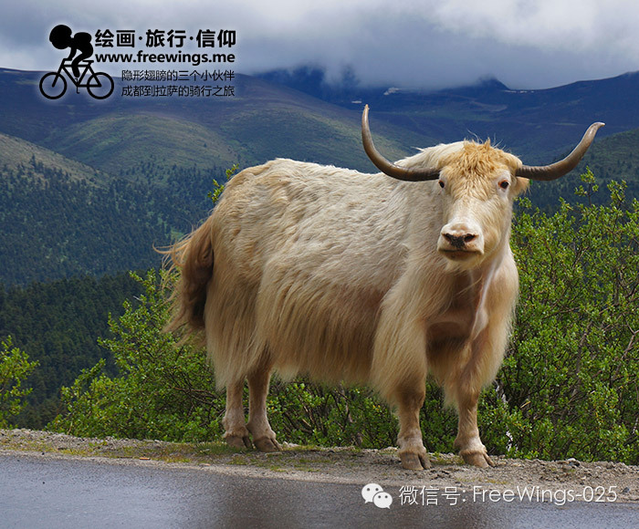 鲁朗到八一的路上,碰到一只大白牦牛,炯炯有神的看着我们。
