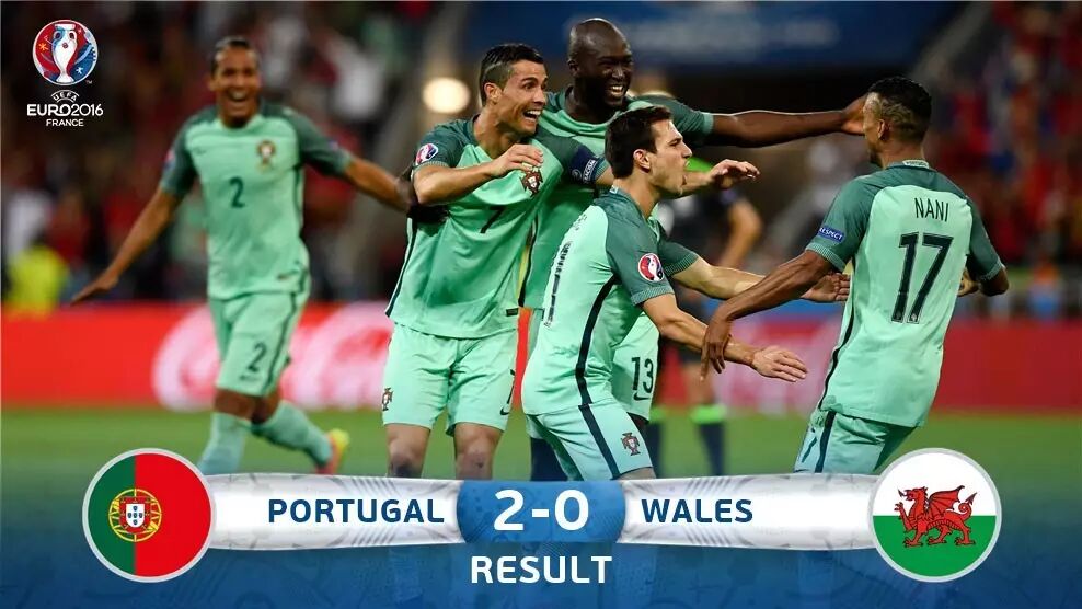北京时间7月7日03:00,2016欧洲杯第1场半决赛在里昂体育场开始争夺,葡萄牙2比0取胜威尔士,C罗头球破门后又助攻纳尼,扩大比分。葡萄牙12年后再次杀入决赛,将对阵法国和德国之间的胜者。