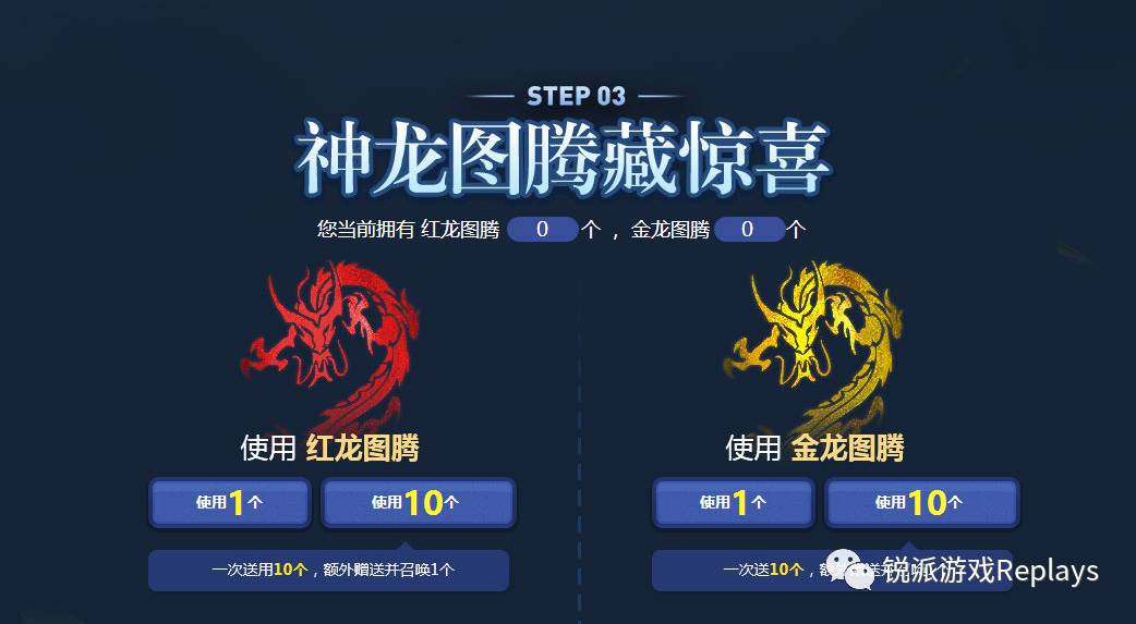 6 打开红龙图腾将累计1积分,打开金龙图腾将累计2积分。赠送的红龙图腾不累计积分。累计积分达到一定数量,可以获赠神秘图腾好礼。