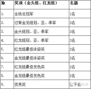 2、参赛者根据报名付费者先到先得。特殊情况,主办、承办单位将有权重新分配的参赛鱼只数目,并有权重新分类组别。3、主办单位给每条参赛鱼提供一个鱼缸,与过滤器、照明,配备加热器。鱼缸总数:36个,尺寸:1200mm×426mm×750mm。4、参赛龙鱼的最小尺寸不能低于30厘米。如鱼体尺寸不够,或错误分类的,或有不健康的鱼,将被当场取消参赛资格。所有被取消资格的鱼只,主办、承办单位有权不另行通知或向参赛者解释任何理由。5、主办、承办单位为了保障参赛鱼只的安全,将在整个展会期间,组织专业人员负责维护。但是,主承办单位将不承担任何原因或任何其他不可预见的情况下导致参赛鱼死亡的赔偿。6、如导致大赛被推迟、缩短或因任何超出主承办单位无法控制的原因,主承办单位将不负责对参赛者直接或间接的损失。7、参赛鱼只的报名截止日期为2015年10月20日。超过此日报名和现场报名的,将不被接受。8、参赛所有龙鱼只应于2015年10月28日至10月29日送到大赛场馆,从上午10点至下午5点。迟到将不被接受。评选日定为2015年10月29日晚上19:00--21:00。9、参赛鱼只一旦被接受作为参加大赛时,将会在3天中作为展览展出,参赛者不允许在规定中时间擅自退场。10、本主承办单位征聘国内外著名裁判团评比分数, 并给于裁判团作为最高权力决定最终成绩裁定结果。参赛者将被视为愿比服裁。确定参赛鱼只数量以最后报名为主,报名未满所剩之鱼缸则改为龙鱼观赏展示。大赛秉承公开、公平、公正的原则,根据评分表格对每尾参赛龙鱼进行评比,统计所有评委的评分,去掉一个最高分、一个最低分,最后平均得分为最后得分。参赛龙鱼不重复得奖。获奖龙鱼,颁发奖杯和大赛主办单位署名的证书。裁判员由国内外5位专业人士(非龙鱼买卖商家)担任。设置公证员监审,以保证大赛的公开、公正、公平。