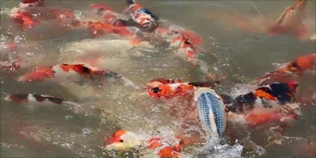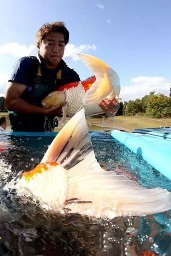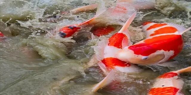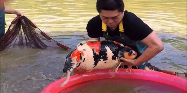 锦鲤会因为环境而调节体形,今天我们来看看泥泞池塘里的锦鲤。