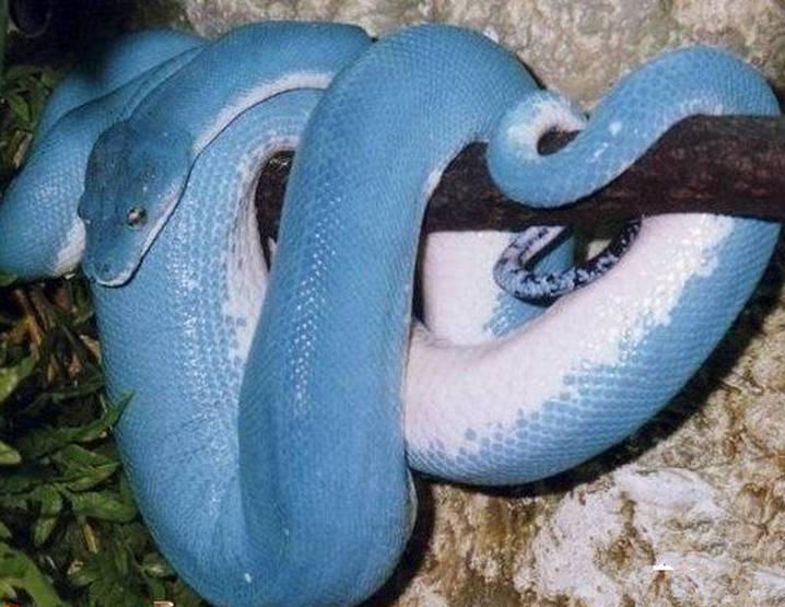 绿树蟒的变异品种——蓝蛇是非常稀有的蛇类,正所谓物以稀为贵,因此一条成年蓝蛇能卖到40万美元的高价。