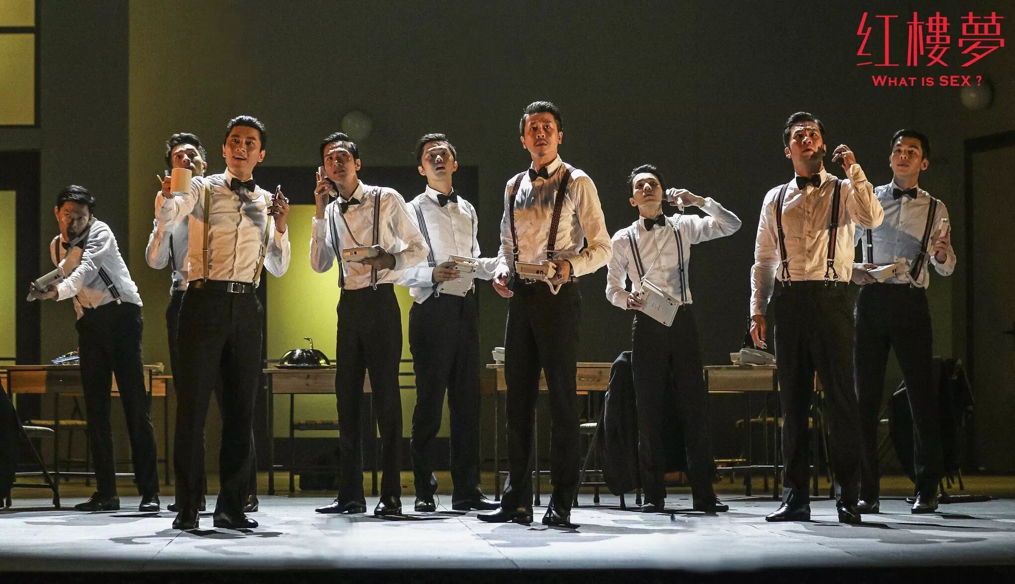 我觉得这部戏我再找十几个女演员在台上哭得死去活来,没意思,因为戏曲里面已经演过了。所以我安排了12个男生,他们完全是用男生的姿态,用男人的声调,来讲书中女人的台词。